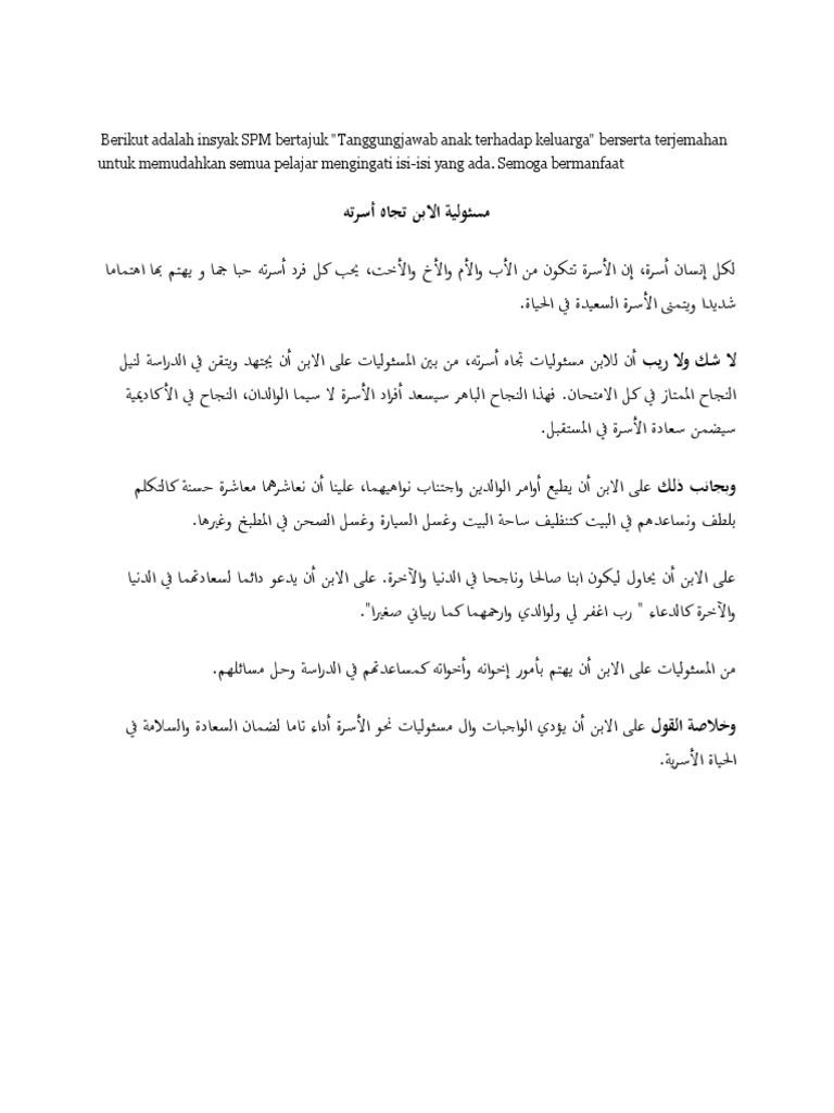 Bahasa arab spm (tingkatan 4 & 5) : Utama » kpm » contoh karangan bahasa arab pt3 pentaksiran tingkatan 3. Upsr, pt3, spm, stpm, muet, tingkatan 1, 2, 3, 4, 5, 6 dan tahun 1, 2, 3, 4, 5, 6 >. Keluarga bahagia memadan dan melengkapkan ayat.(buku aktiviti) id: Tulisan ini atau karangan ini mendapat judul keluarga bahagia.