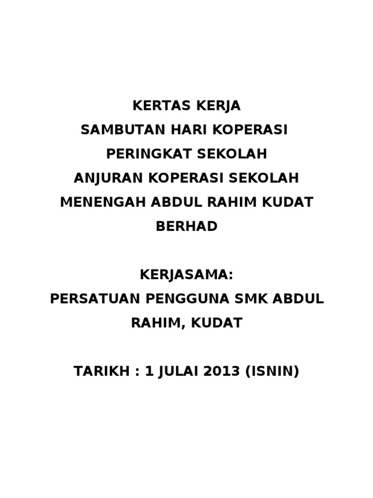Kertas Kerja Penubuhan Koperasi - Penubuhan kelab memanah sekolah kebangsaan damansara utama.. Kami akan bantu anda untuk menyiapkan satu kertas kerja terbaik untuk anda membuat pinjaman perniagaan. Documents similar to contoh kertas kerja / rancangan perniagaan koperasi. Majorti ahli koperasi ada kaitan dengan kampung pudak. Kertas kerja perniagaan yang tersusun dan teratur dengan butiran lengkap memberikan peluang yang cerah untuk menjadikan sesuatu perniagaan itu berkembang maju. .pengawas koperasi dan ahli lembaga koperasi sekolah menengah kebangsaan bekok untuk meningkatkan dan memantapkan koperasi 4.0 sasaran 1.1 semua pengawas koperasi 1.2 ahli lembaga koperasi 5.0 peserta lawatan 40 orang pelajar, 4 orang.