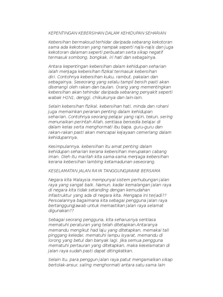 Menjaga kebersihan diri juga adalah salah satu amalan gaya hidup sihat yang harus dipraktikkan oleh setiap individu tak kira umur, bangsa dan agama. Selain itu, menjaga kebersihan juga penting dalam memberi keselesaan hidup atas tempat tinggal mahupun alam persekitaran. Kebersihan memiliki manfaat positif bagi mereka yang menjaganya, berikut 5 manfaat lingkungan yang bersih bagi masyarakat orang akan memberi penilaian terhadap diri kita jika mereka melihat tampak luar dari diri kita, seperti. Kebersihan faktor penting dalam kesehatan, terutama untuk menjaga agar tetap sehat. Berikut merupakan contoh gambar tentang cara menjaga kebersihan diri dari aspek yang kamu pelajari melalui perisian tadi.